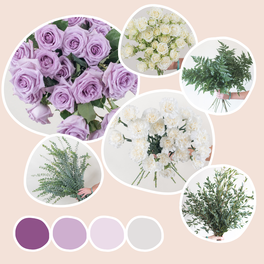 The possibilities are endless when it comes to designing your wedding flowers with mixed flower boxes. The harmonious combination of mauve and purple creates a timeless and elegant palette that is suitable for any wedding theme. Use these combo boxes to create custom bouquets for the bride and bridesmaids, adding a unique and personalized touch to your wedding florals. These stunning colors also work beautifully in centerpieces, ceremony arches, and other floral installations, ensuring a consistent and elegant look throughout your celebration.