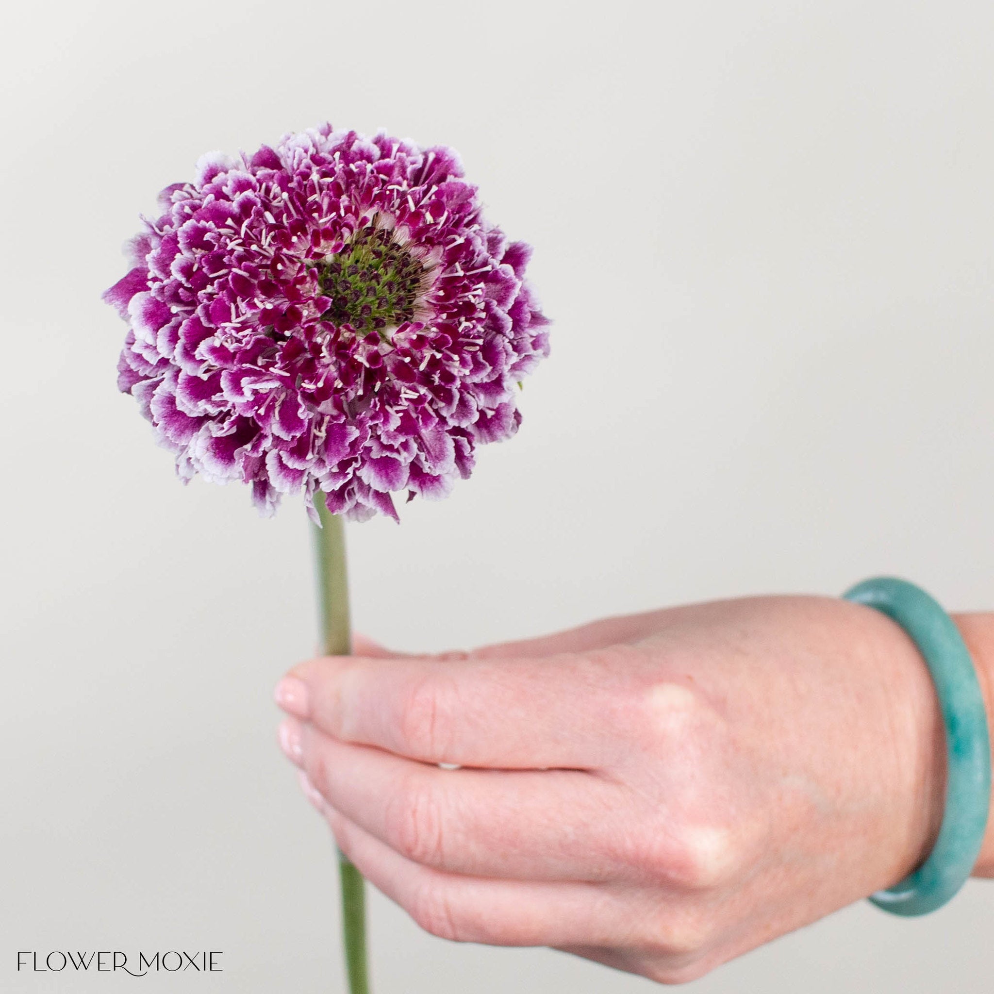 Please Note: Scabiosa flowers usually have plastic straws that aid in holding their heavy heads upright in your arrangements.