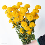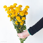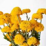 DIY Brides love Yellow Button Pom flowers due to their long-lasting hardiness and versatility. Button Poms can be used in bouquets, bouts, centerpieces, and large-scale arrangements even in the hottest months!