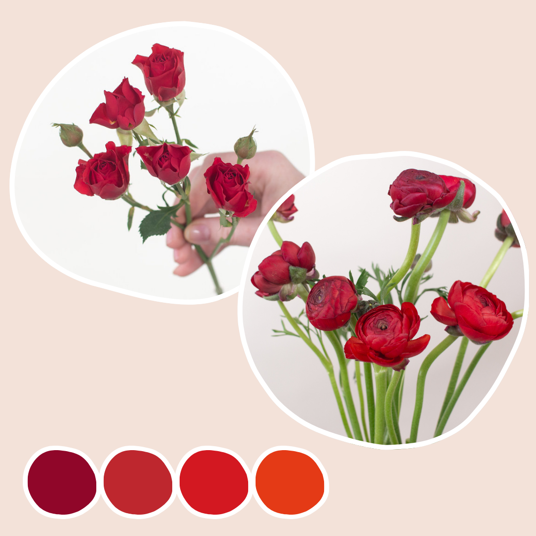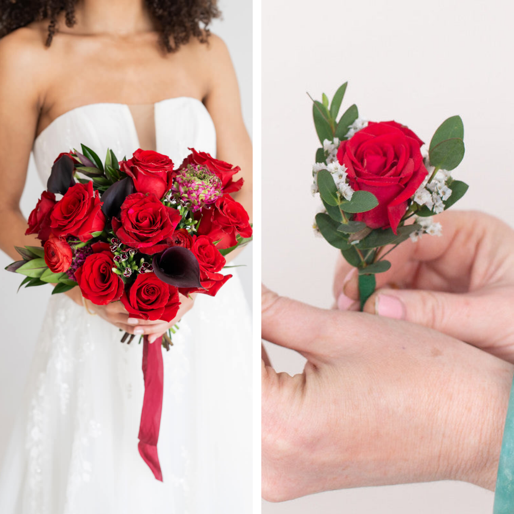 The Red Siren premade collection is a classic with red roses and other accenting red flowers! Red never goes out of style!