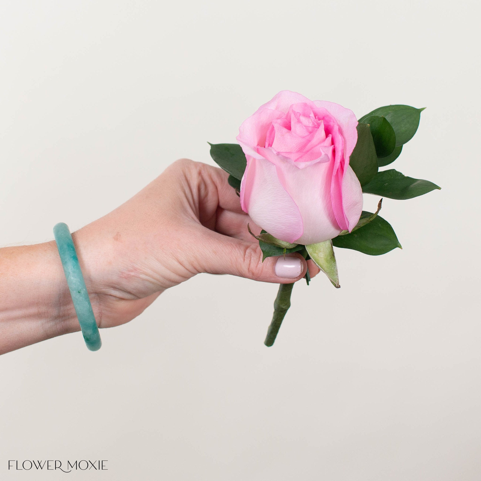 • Packaging: Each boutonniere is wrapped in green stem tape, placed in an individual plastic sleeve, and secured with a water tube to ensure hydration during transit.